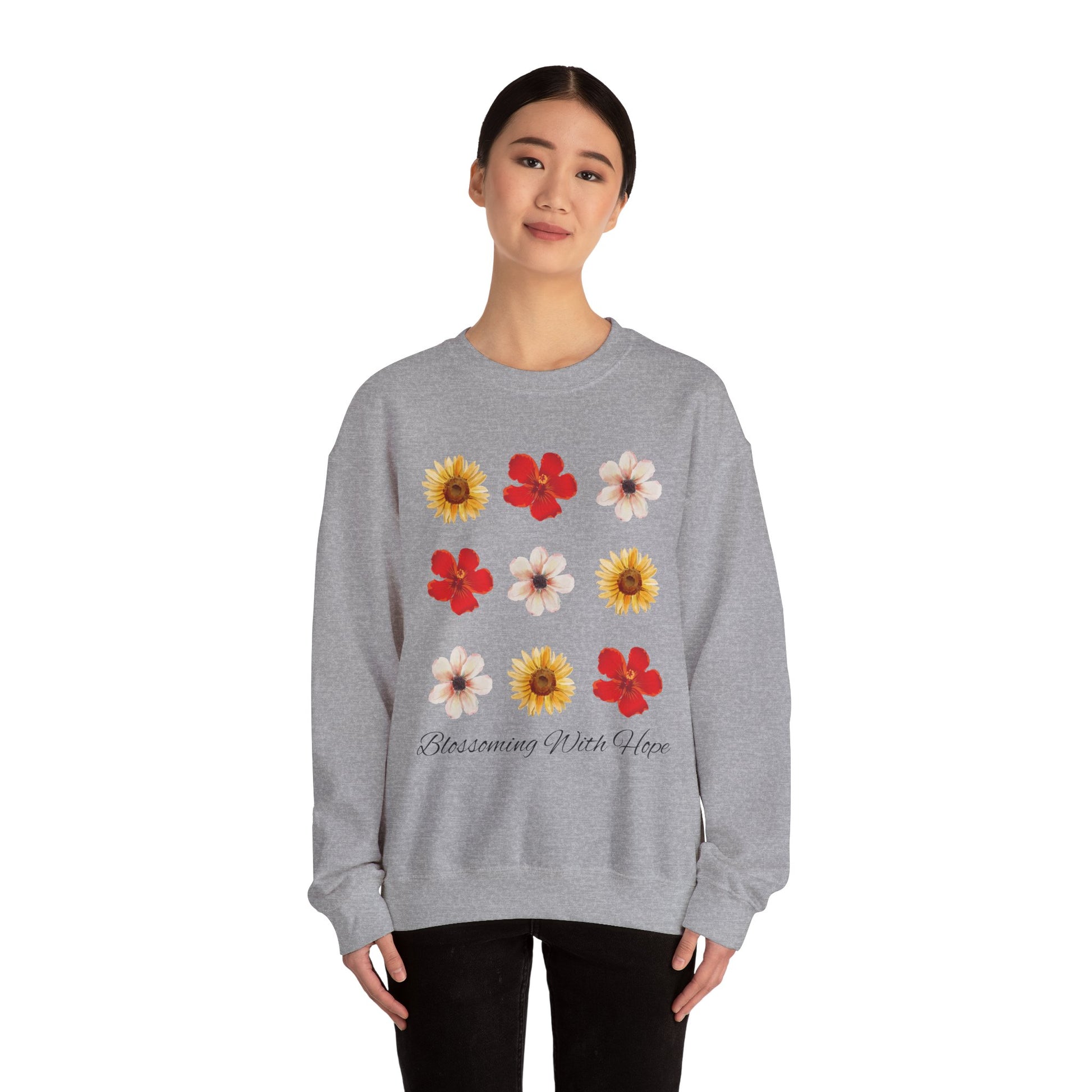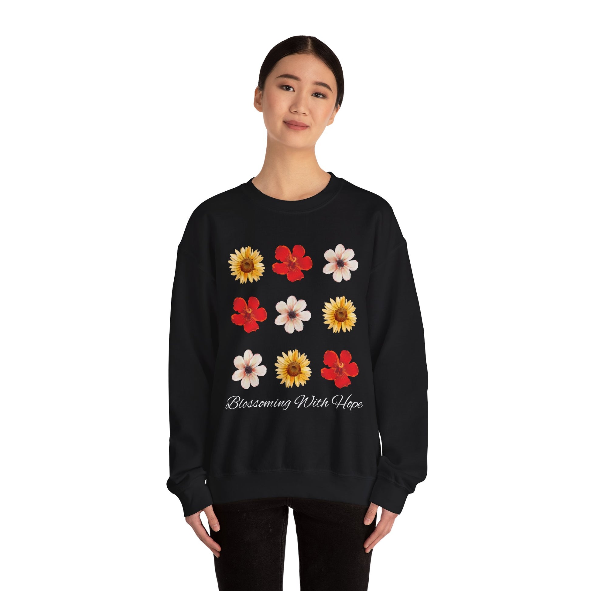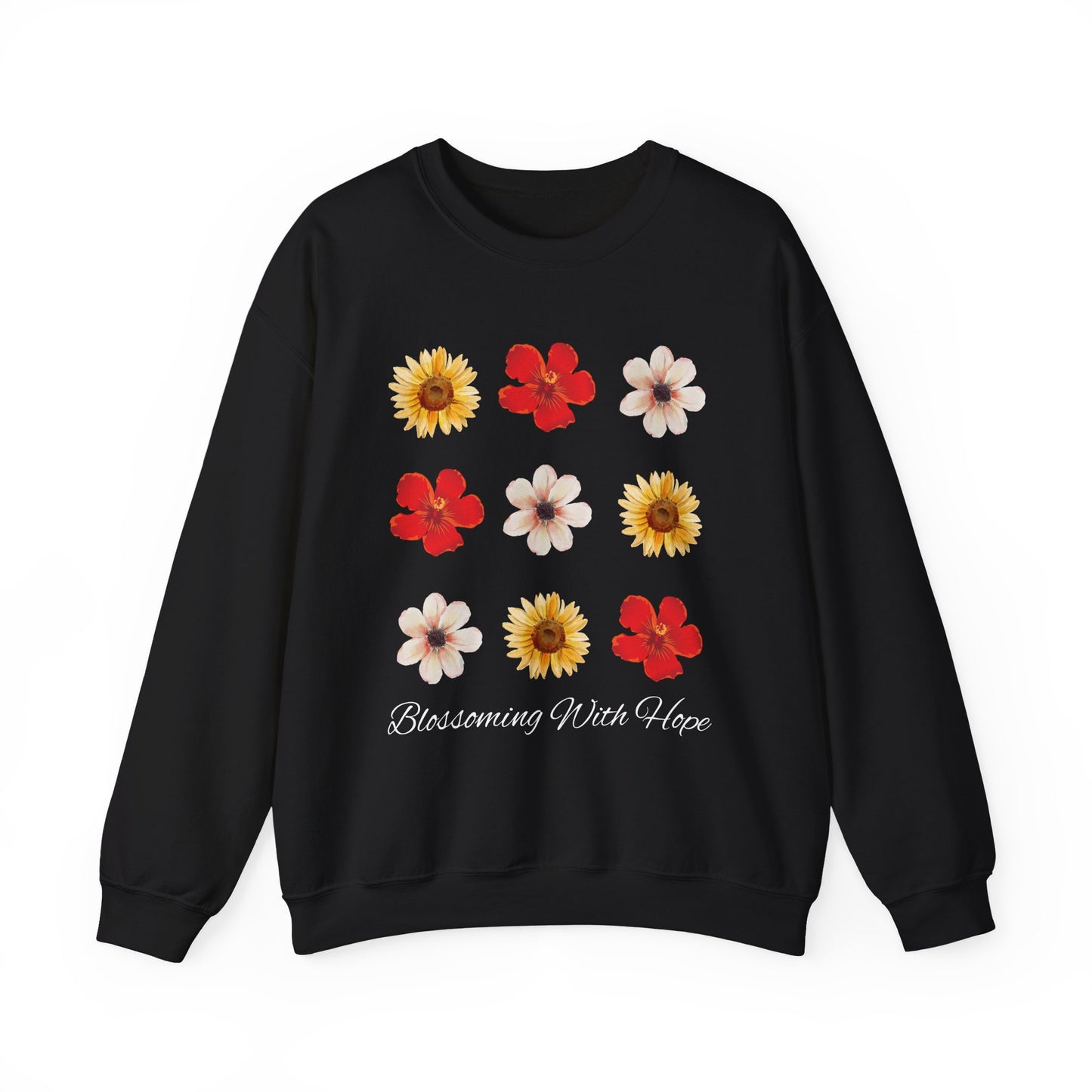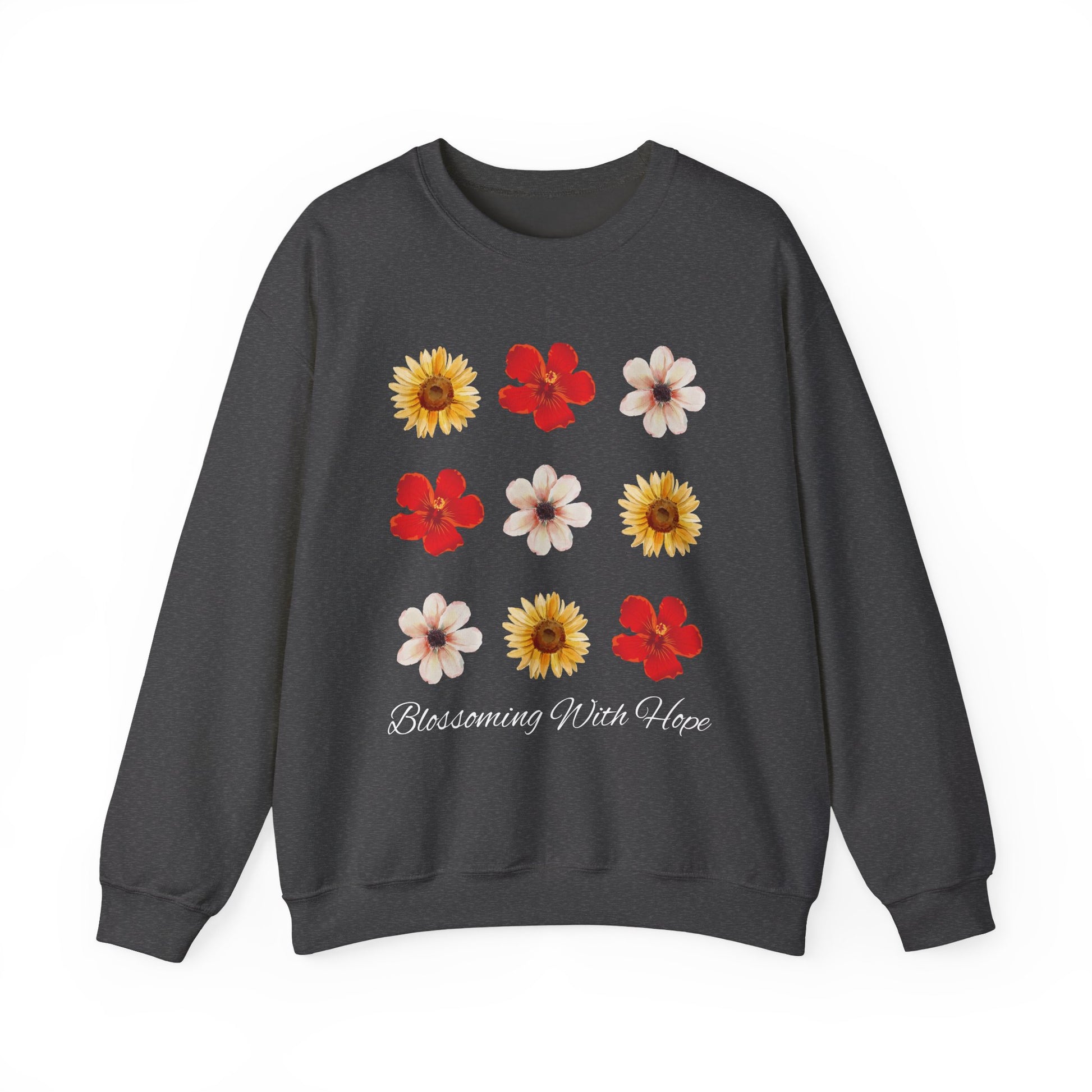 Let your hope blossom beautifully. Our "Blossoming with Hope" Unisex Sweatshirt is a gentle yet powerful symbol of growth and enduring optimism. Crafted from an ultra-soft, cozy fabric, this crewneck provides comforting warmth and features a delicate floral design, paired with a message that truly uplifts. Wear it as a beautiful reminder to nurture your inner strength and always embrace hope, even on the toughest days.