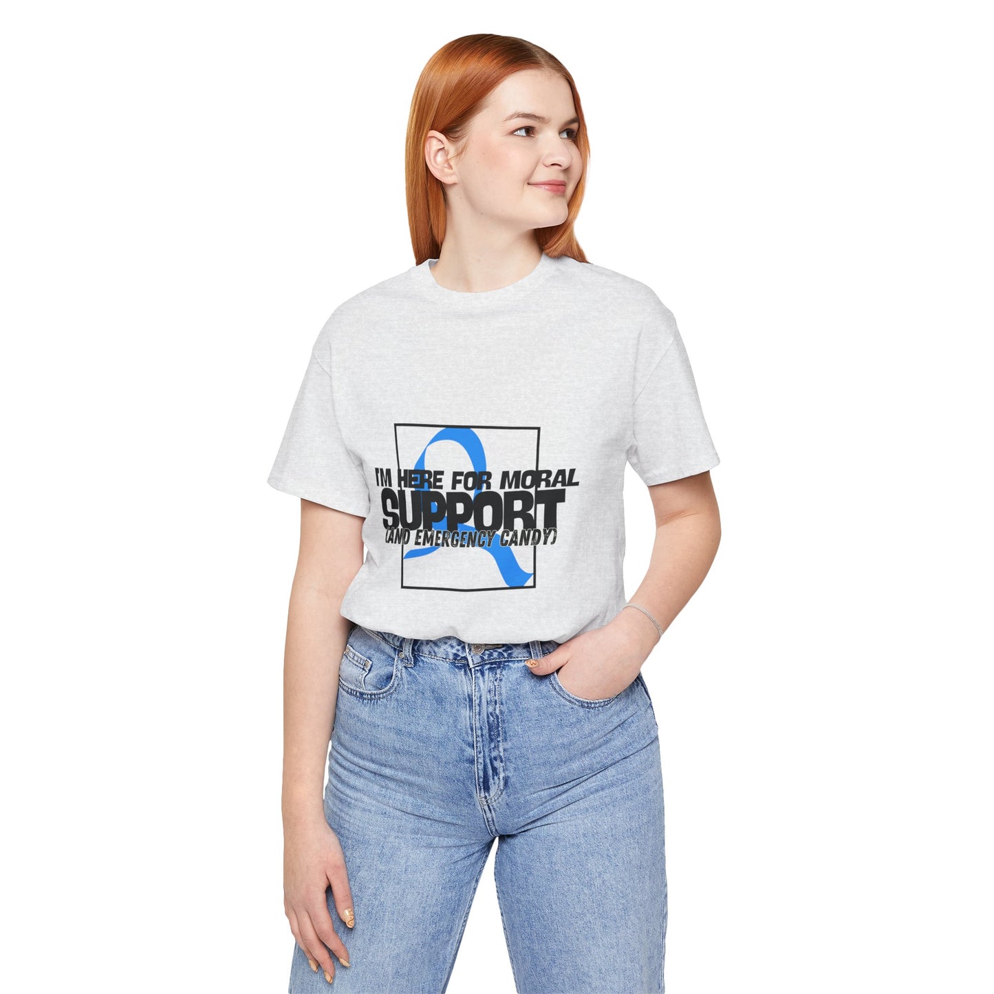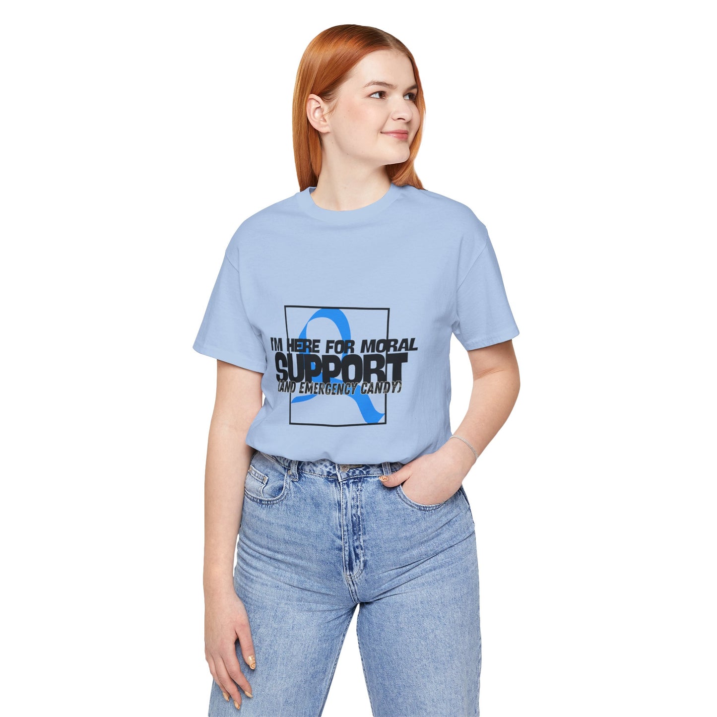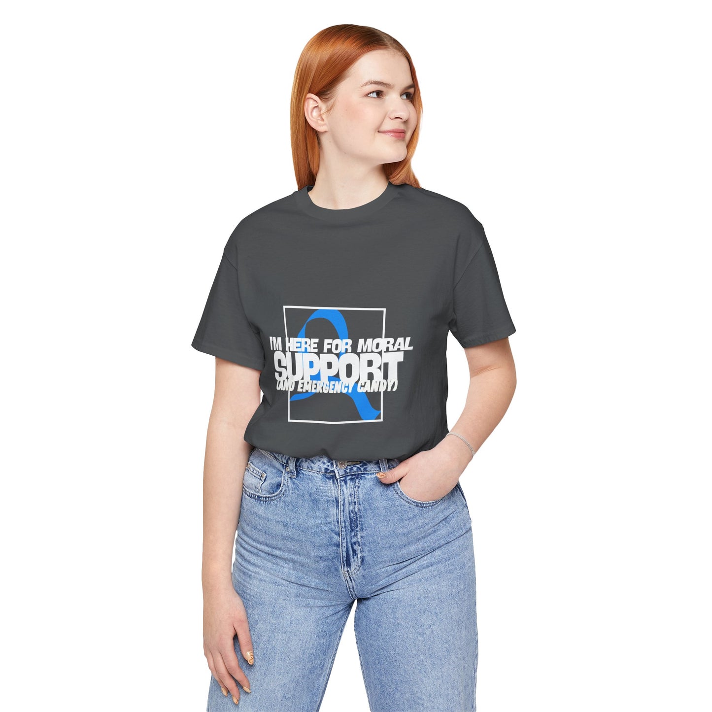 Moral Support and Emergency Candy - Unisex Tee: Being a friend to someone with diabetes means being ready for anything – from offering a listening ear to, well, having some emergency candy on hand! Our Moral Support and Emergency Candy Unisex Tee is designed for the incredible people who stand by their diabetic friends through thick and thin (and the occasional low blood sugar).