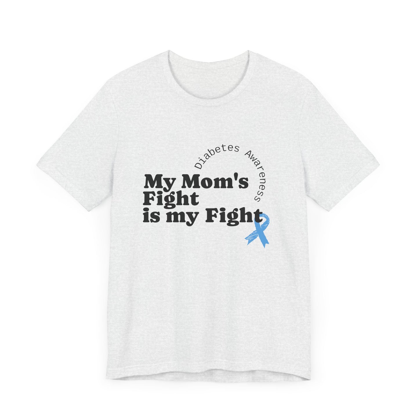 My Mom's Fight Is My Fight - Unisex Tee: Standing Strong, Together. When a mom faces the daily challenges of diabetes, her strength inspires everyone around her. This "My Mom's Fight Is My Fight" tee is a heartfelt declaration of unwavering support and love, showing the world that you're right there with her, every step of the way. More than just a t-shirt, this is a symbol of solidarity and a badge of honor for anyone walking alongside their mother in her journey with diabetes. It embodies the powerful bond and relentless courage that fuels her, and your shared commitment to her well-being. Wear it to raise awareness, inspire hope, and celebrate the incredible strength of your mom.