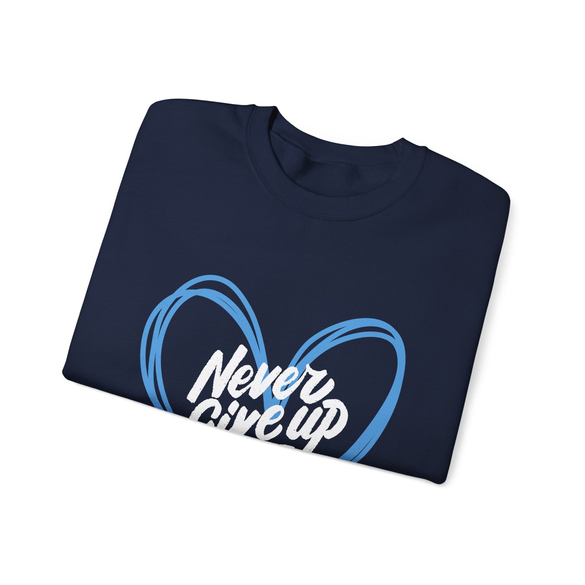 Some battles are fought within, and this sweatshirt is a testament to your strength. Our "Never Give Up!" Unisex Sweatshirt is crafted from a premium, plush fabric, providing exceptional comfort for any day. With its timeless design and inspiring message, it's more than just clothing – it's a statement of perseverance. Wear it as a badge of honor, celebrating your unwavering spirit.
