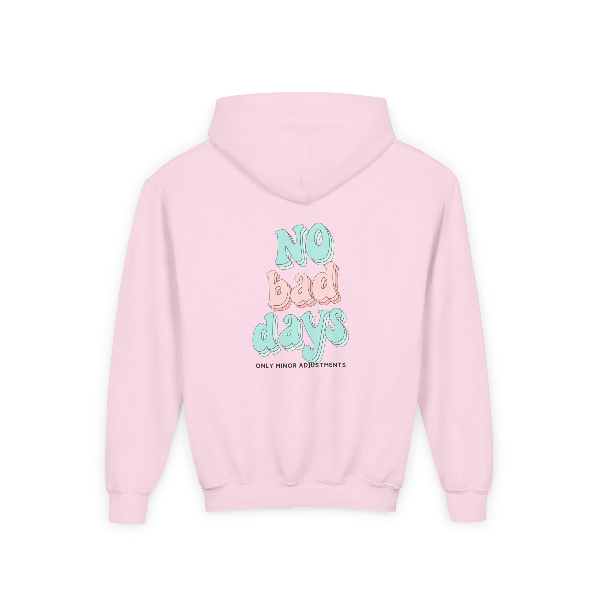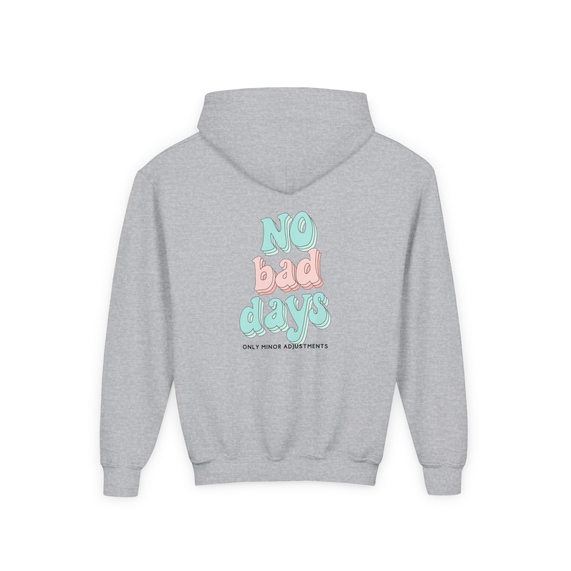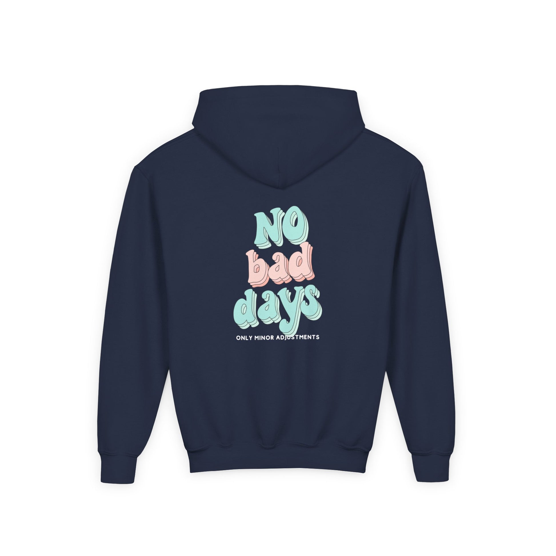 No bad Days - Youth Hoodie: Embrace every moment with our "No Bad Days, Only Minor Adjustments" unisex tee. This shirt is a comfortable and inspiring way to express the reality and resilience of living with diabetes. Made from soft, high-quality fabric, it's perfect for everyday wear, reminding you and those around you that every challenge is just a minor adjustment on the path to a great day.