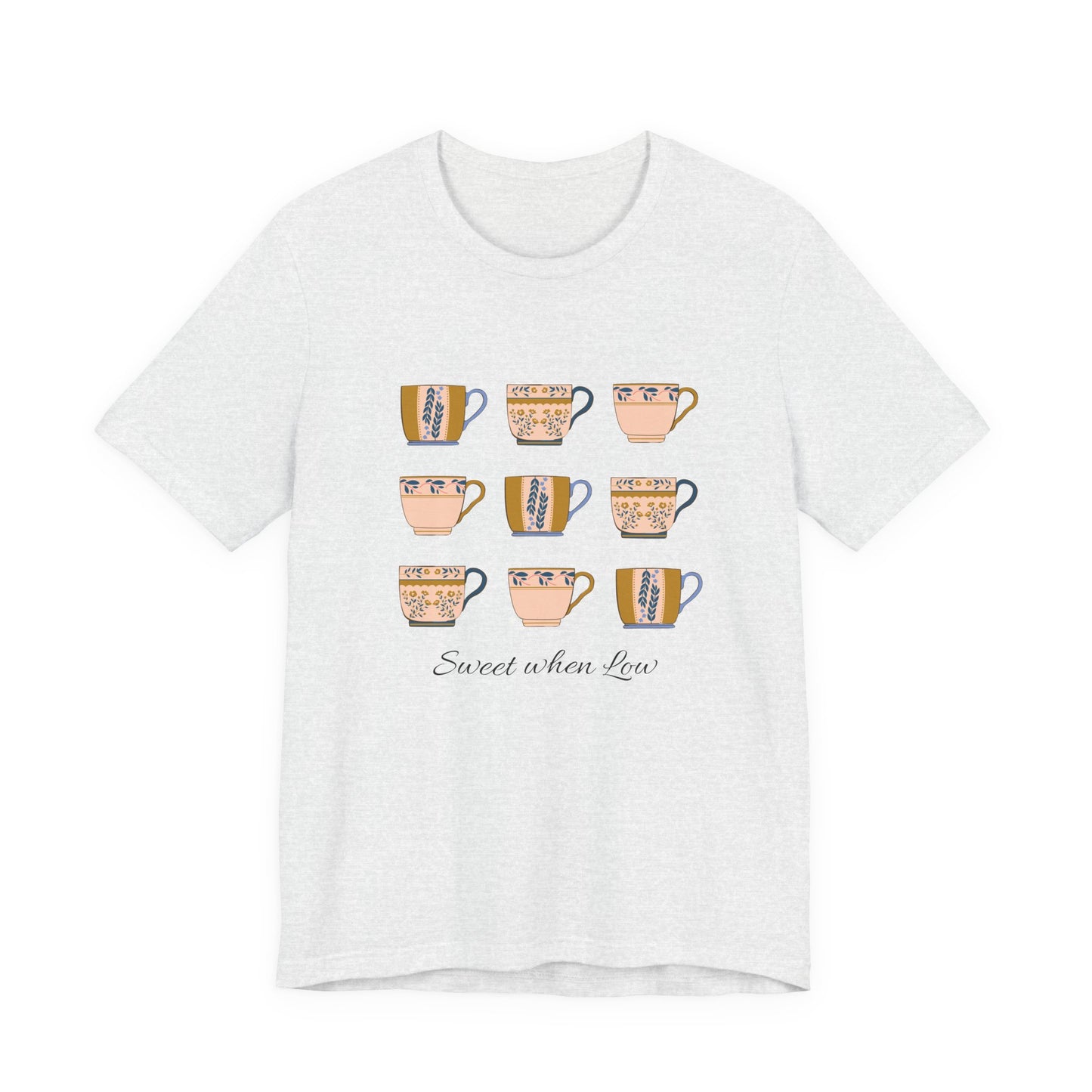 Sweet when Low - Unisex Tee: Why not add sugar in your coffee when low? Living with diabetes means knowing the unique, sometimes quirky, sensations that come with blood sugar fluctuations. For those who experience the distinct craving or need for something "sweet" during a low, our "Sweet When Low" tee captures that familiar reality with a touch of wit and relatability.