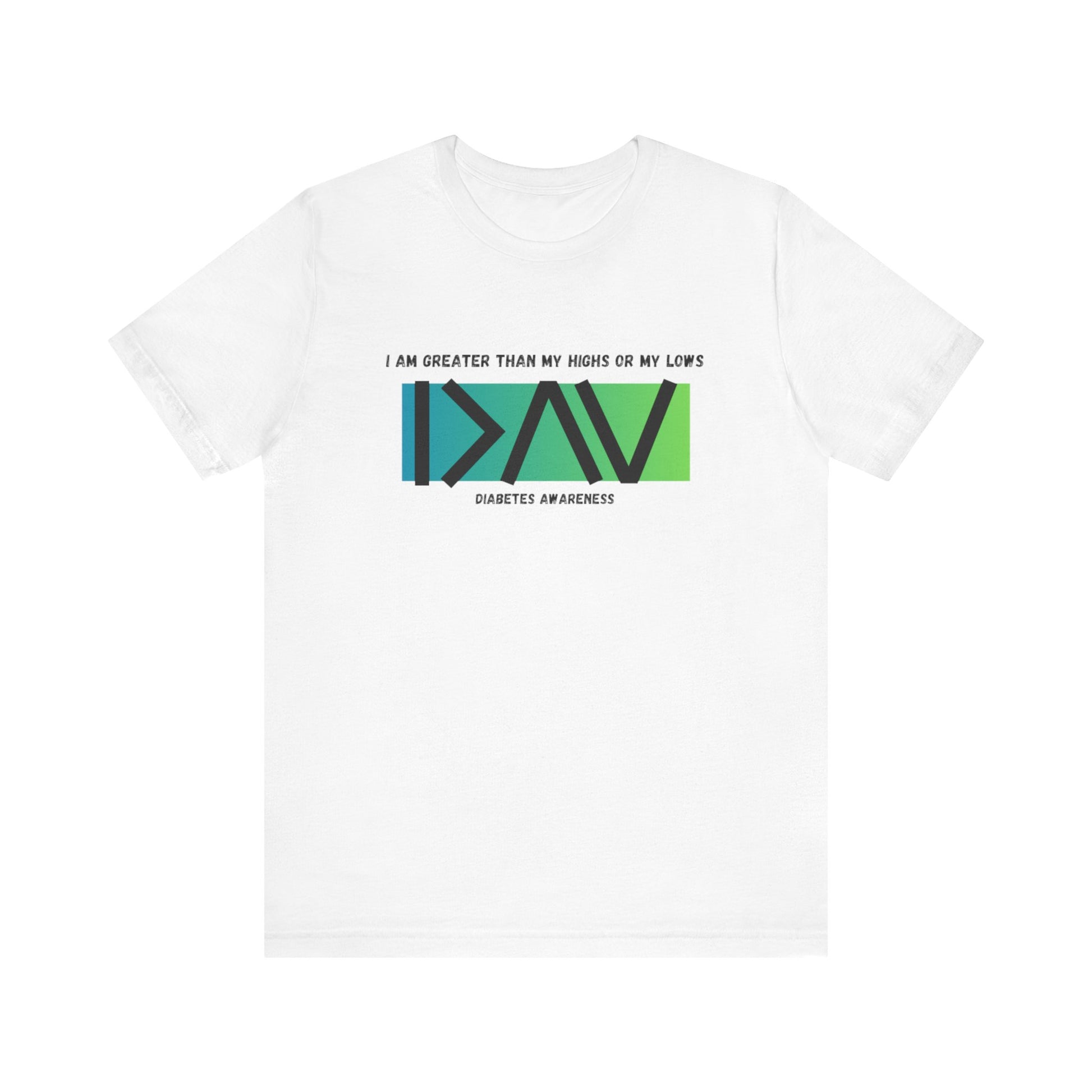 Greater than (Green) - Unisex Tee: Wear the I am greater than (green) - Unisex Tee proudly and help bring more awareness to diabetes with this classic unisex jersey short sleeve tee fits like a well-loved favorite. Soft cotton and quality print make users fall in love with it over and over again. These t-shirts have-ribbed knit collars to bolster shaping. The shoulders are tapered for a better fit over time. Dual side seams hold the garment's shape for longer.